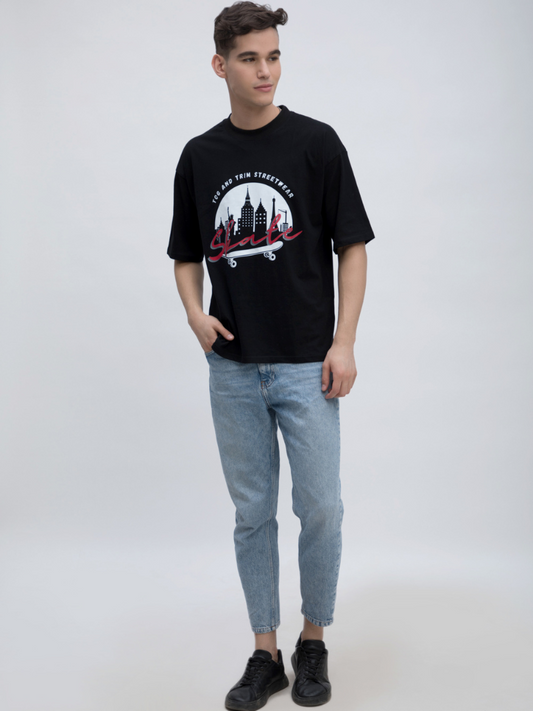 Printed Oversized Tshirt in Grey (Acid Washed)