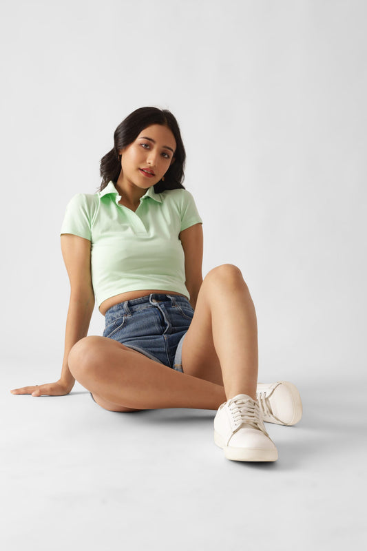 65% OFFLight Green Polo Crop Top