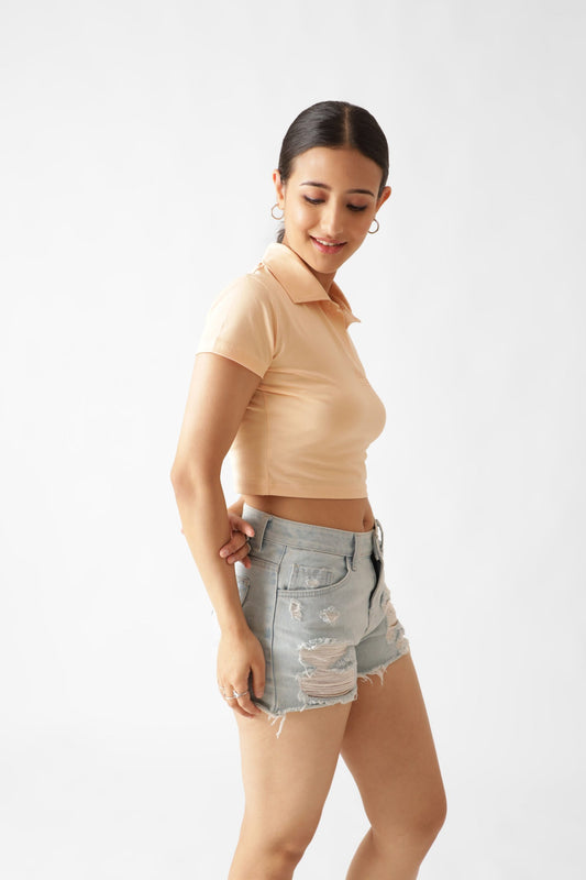 65% OFFBeige Polo Crop Top