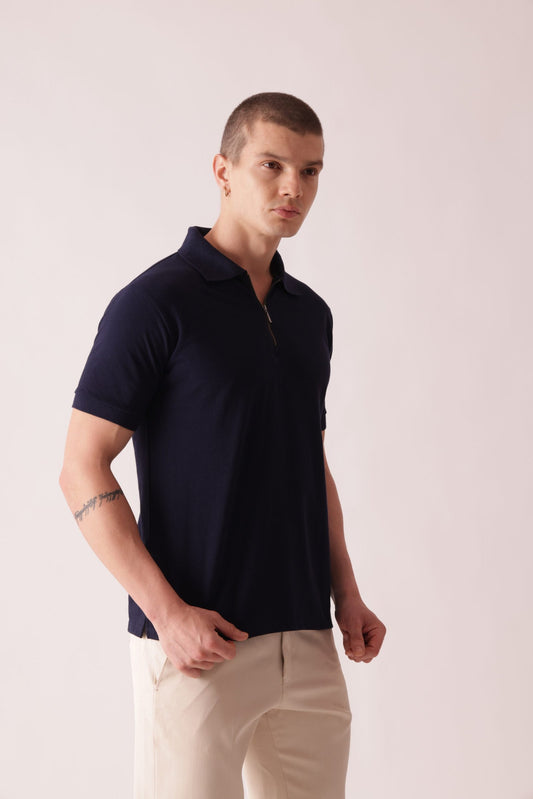 Classic Dri-Fit Zipper Polo T-shirt in Blue