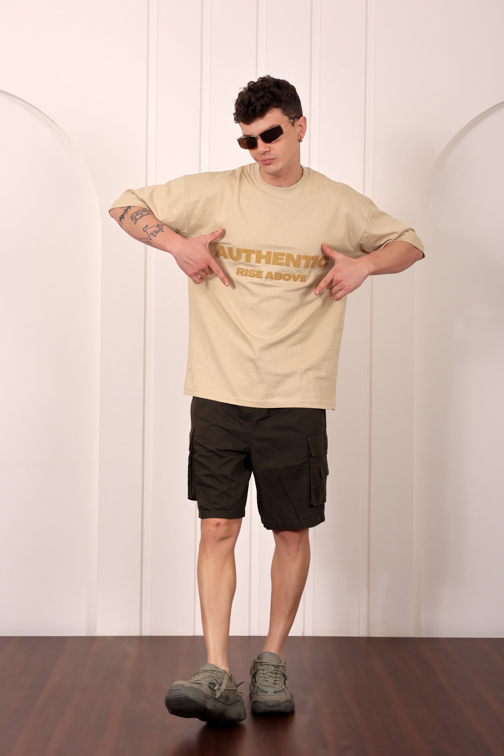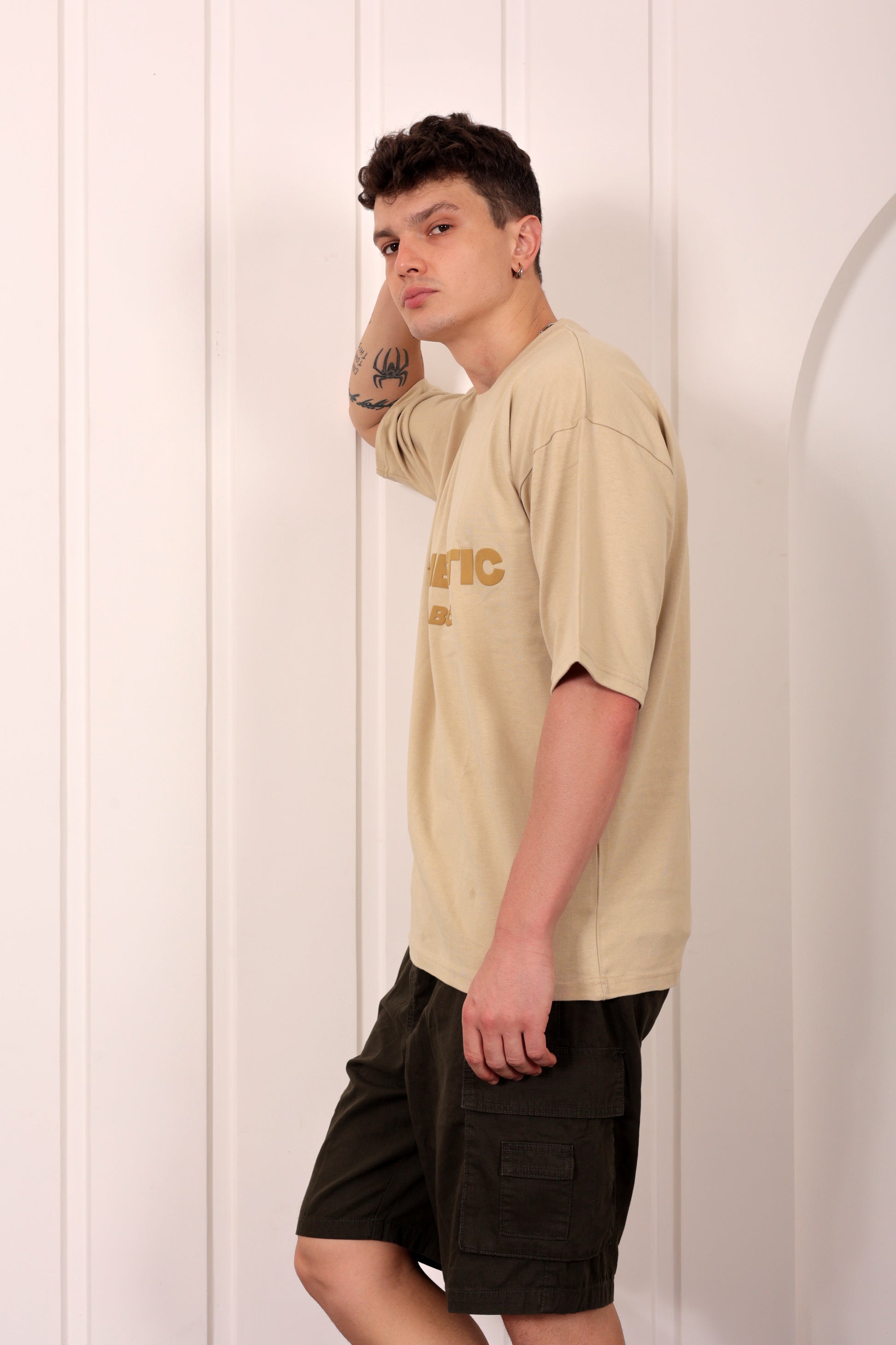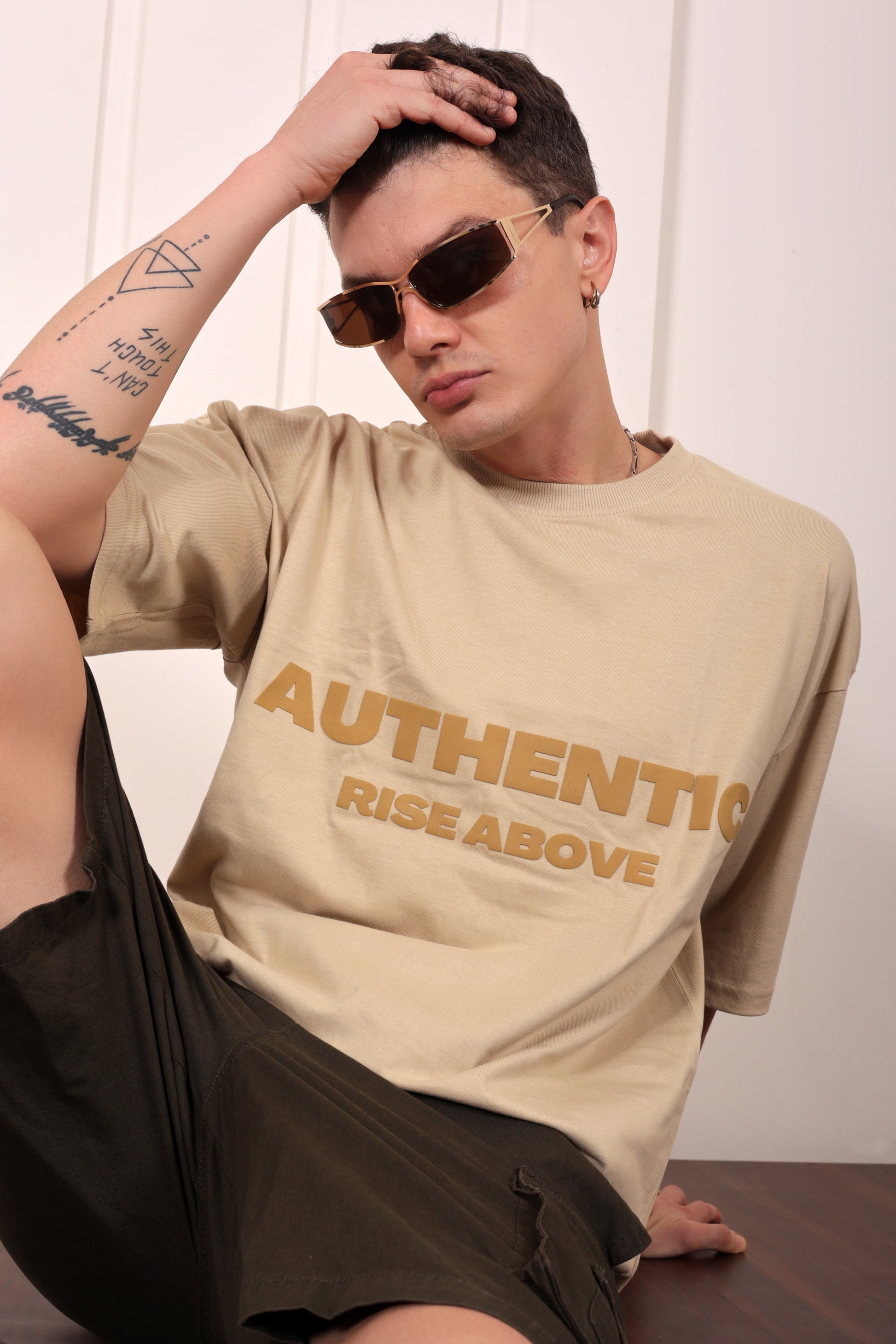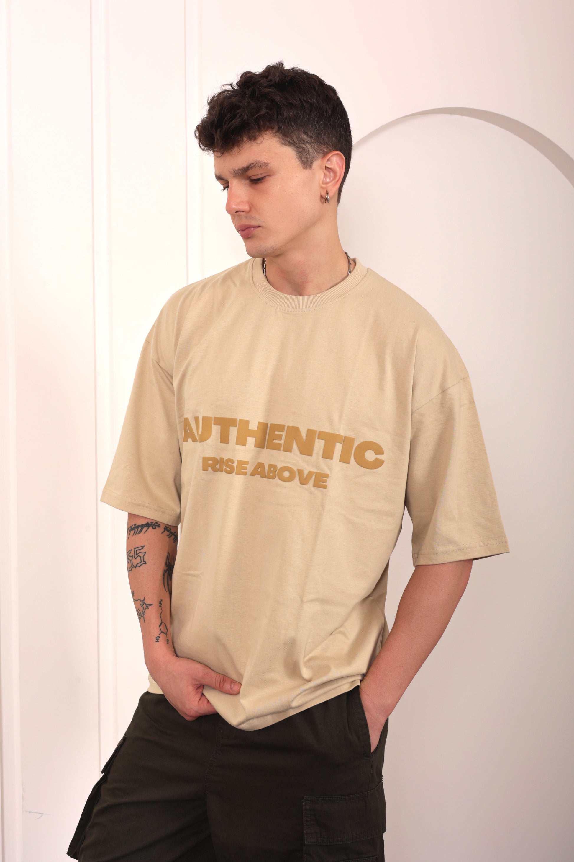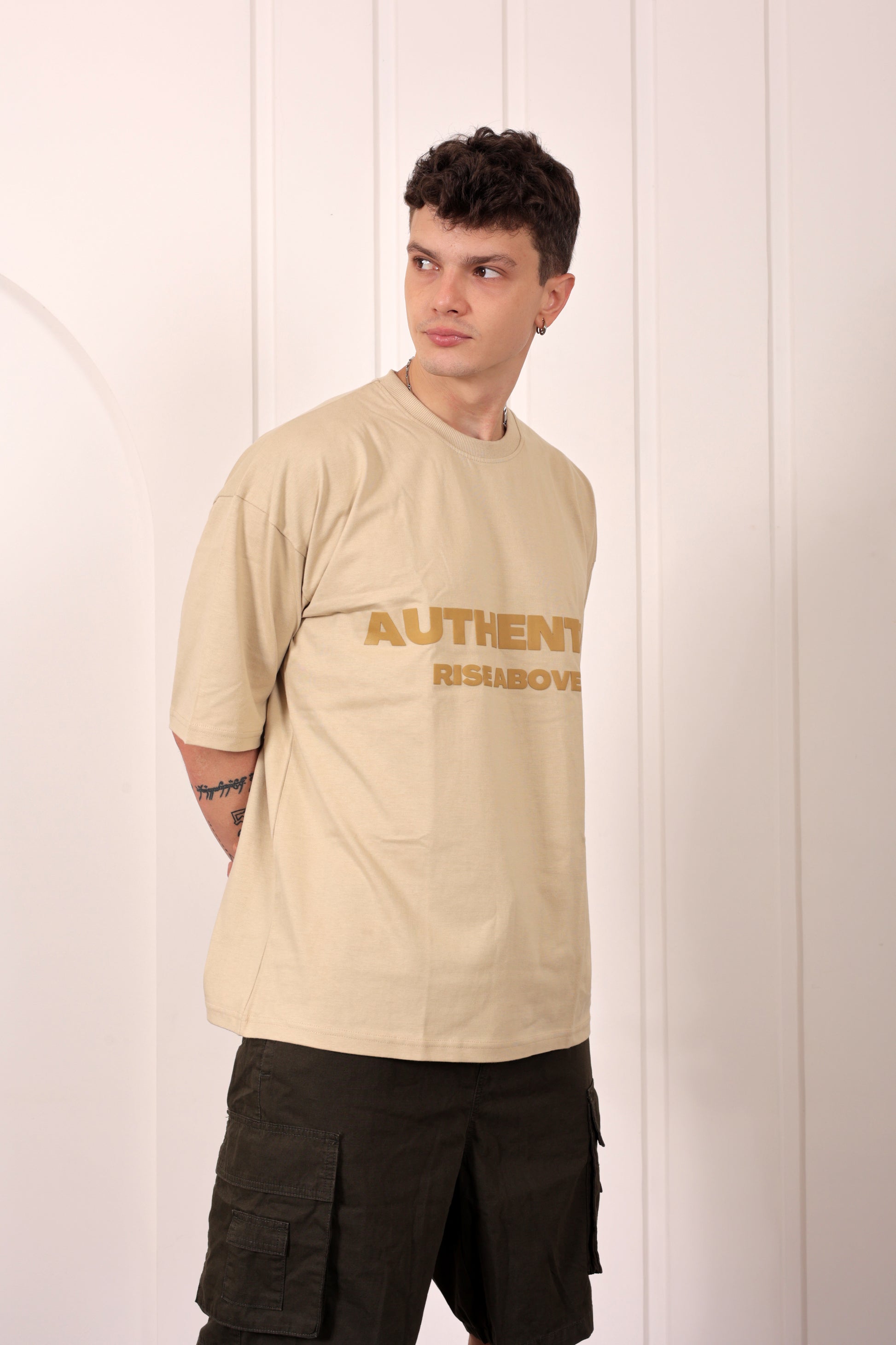Authentic Beige Oversized Printed T-shirt