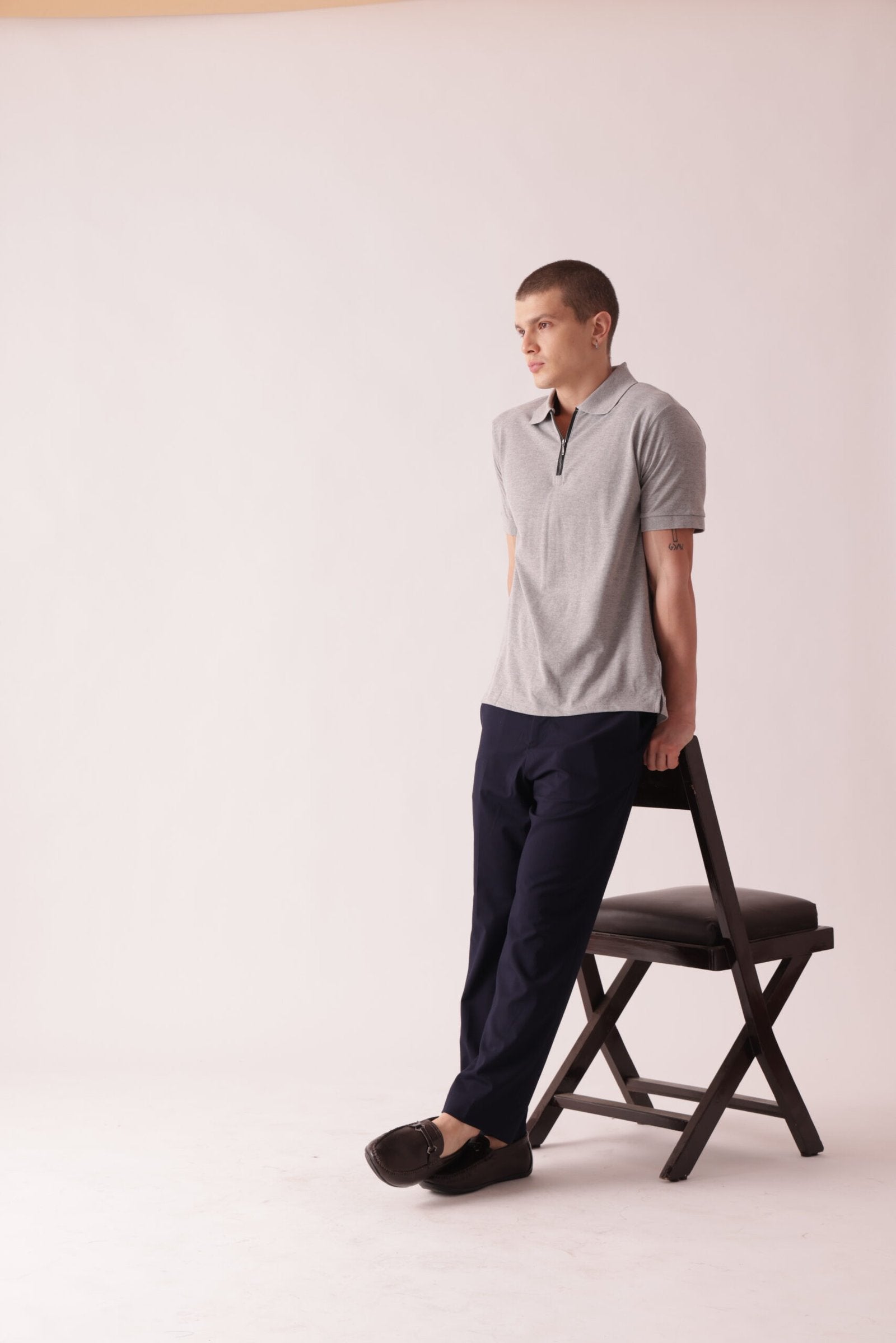 Classic Dri-Fit Zipper Polo T-shirt in Blue