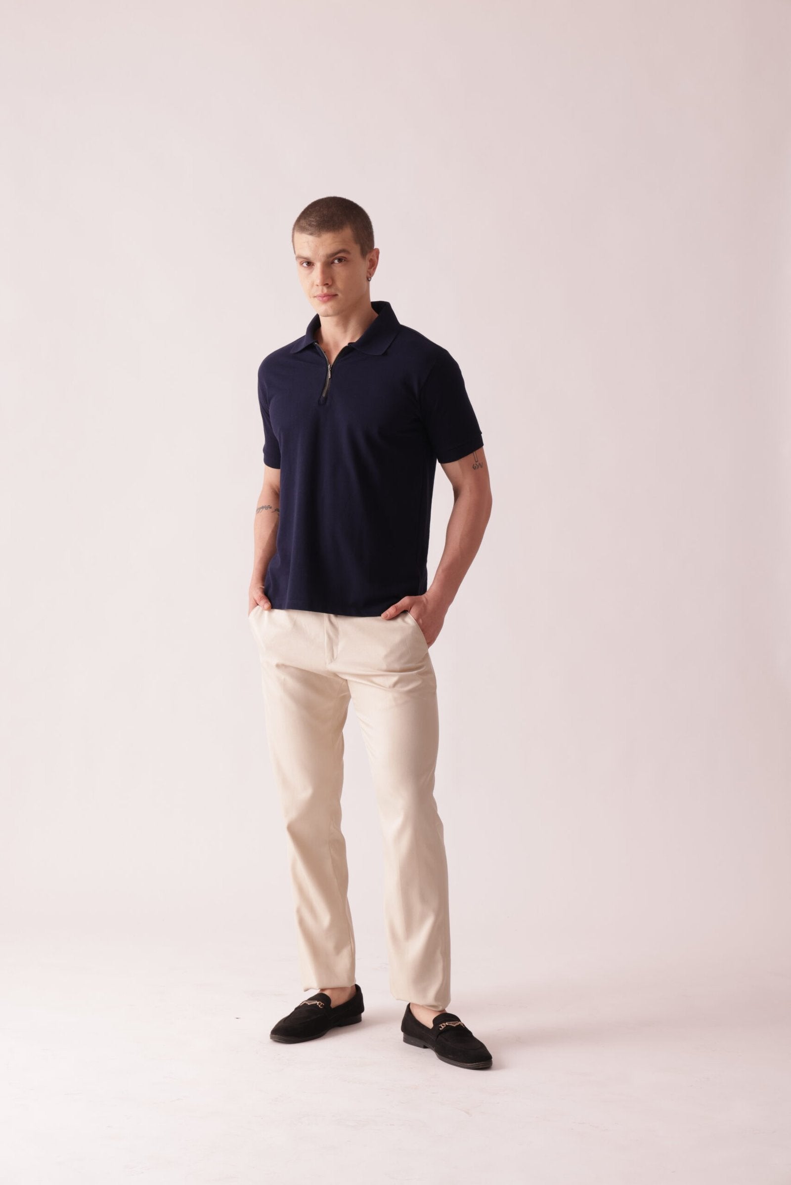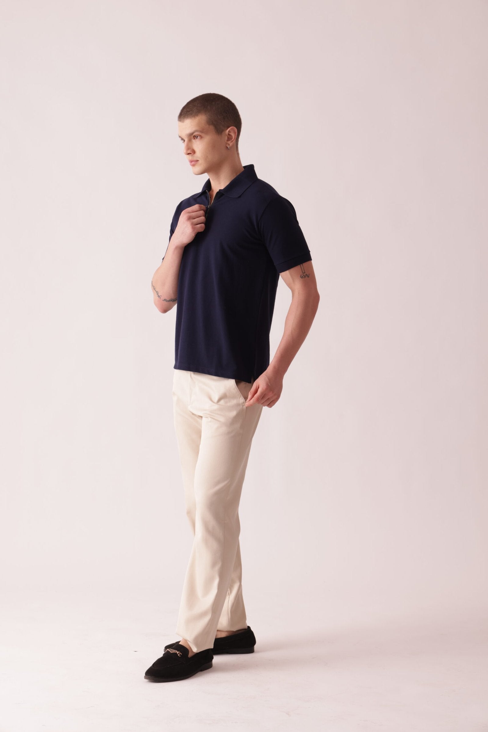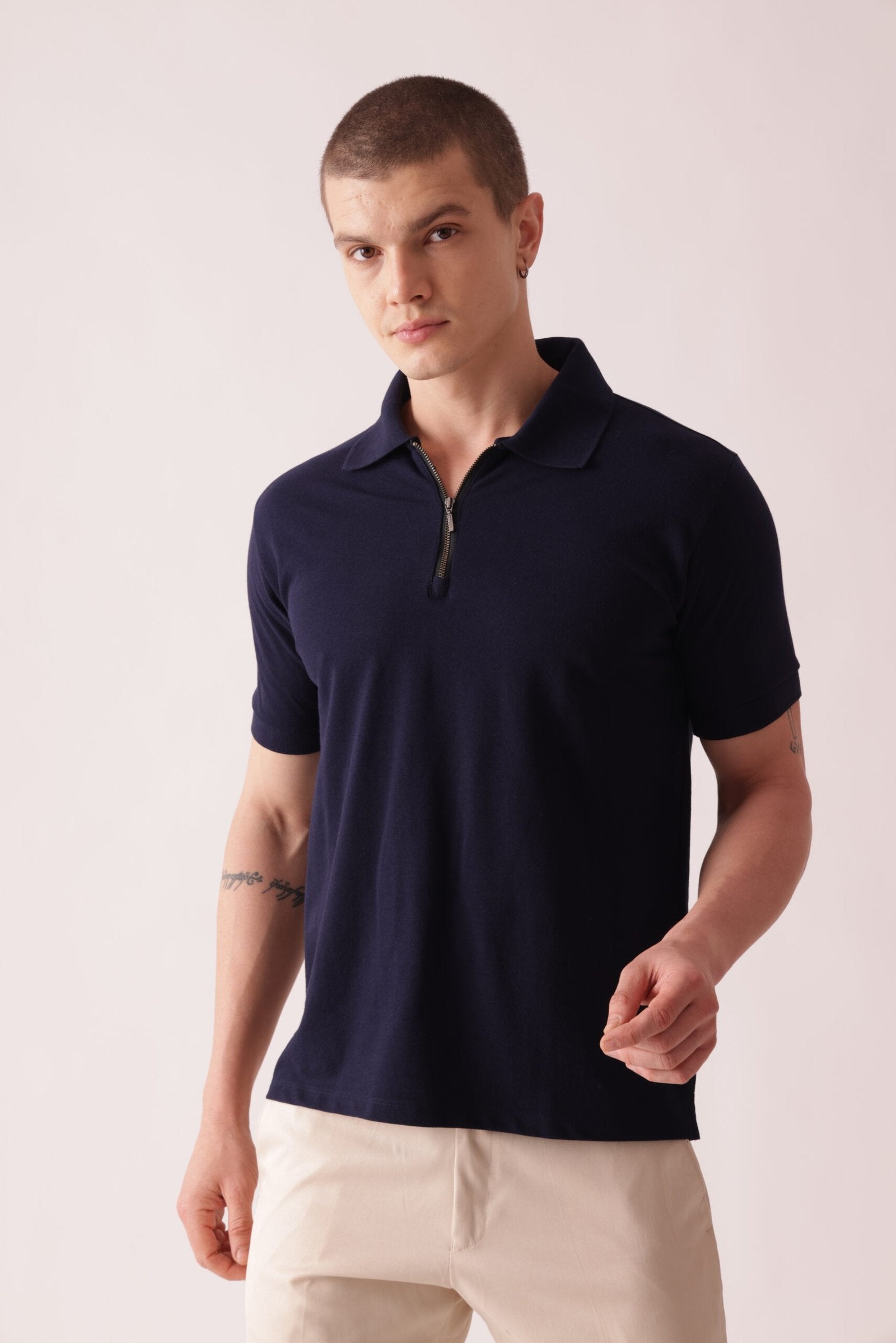 Classic Dri-Fit Zipper Polo T-shirt in Blue