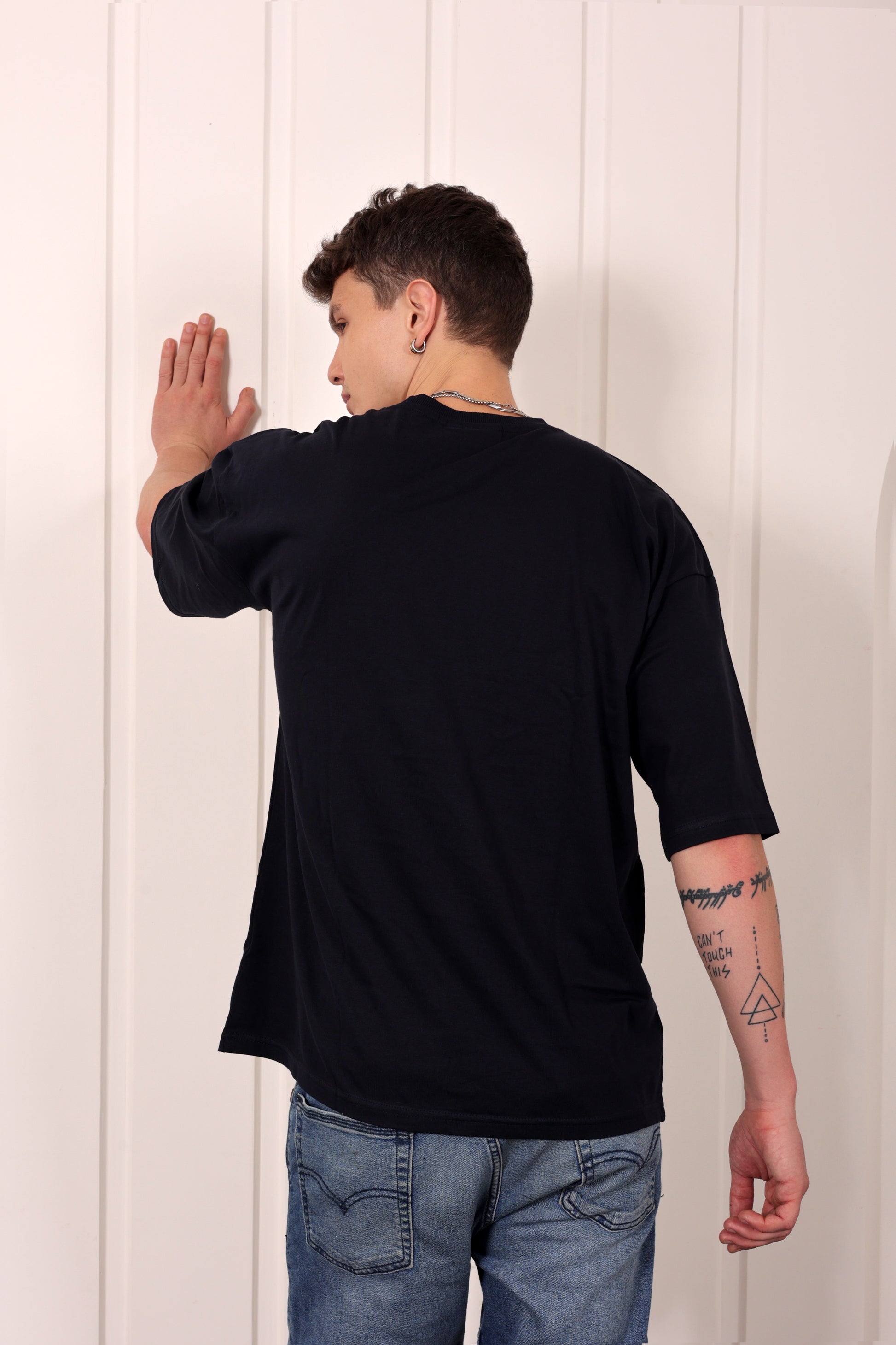 - Oversized drop shoulder fit