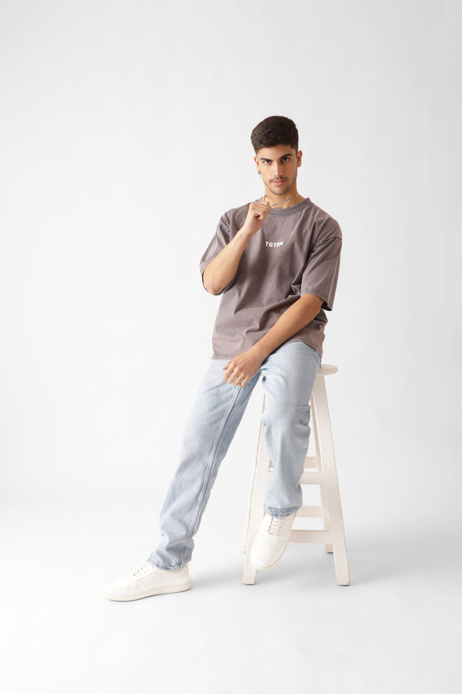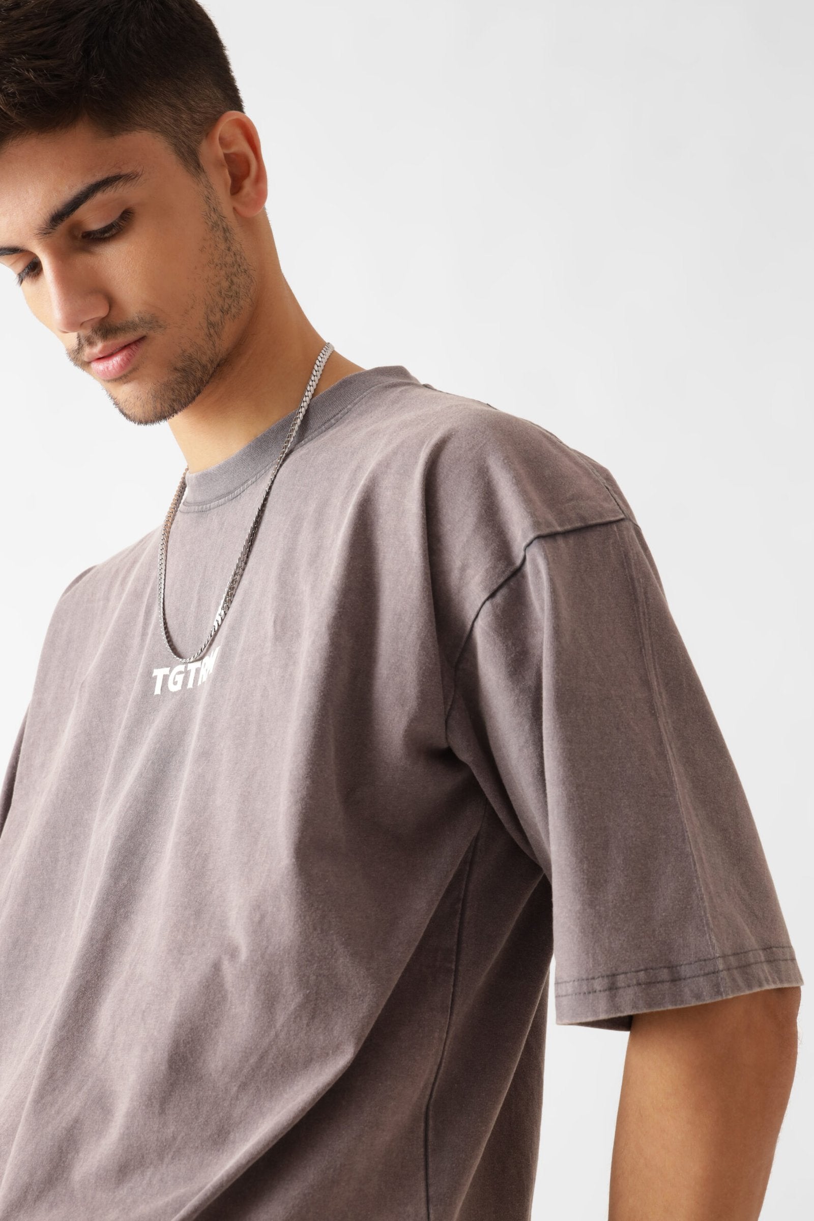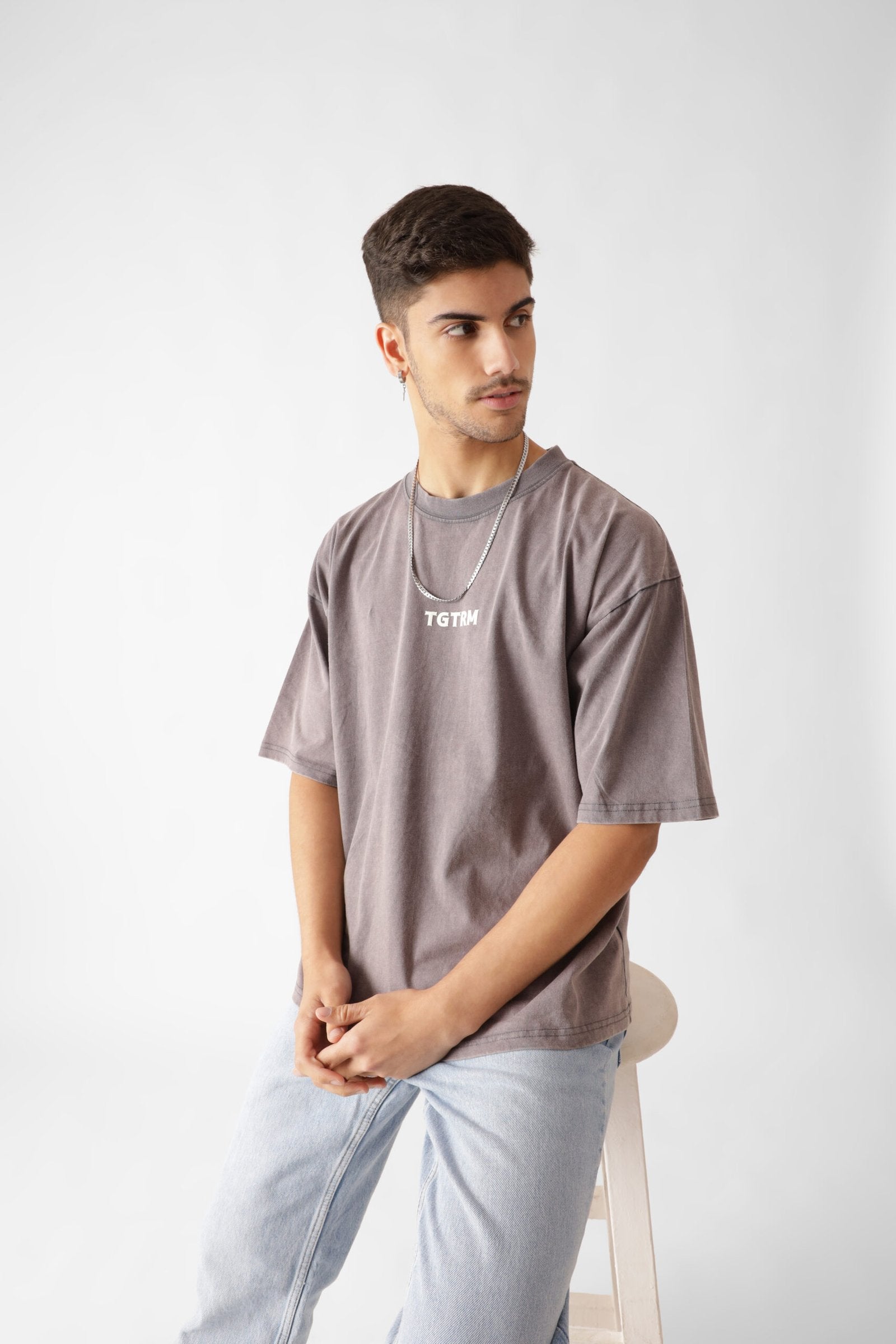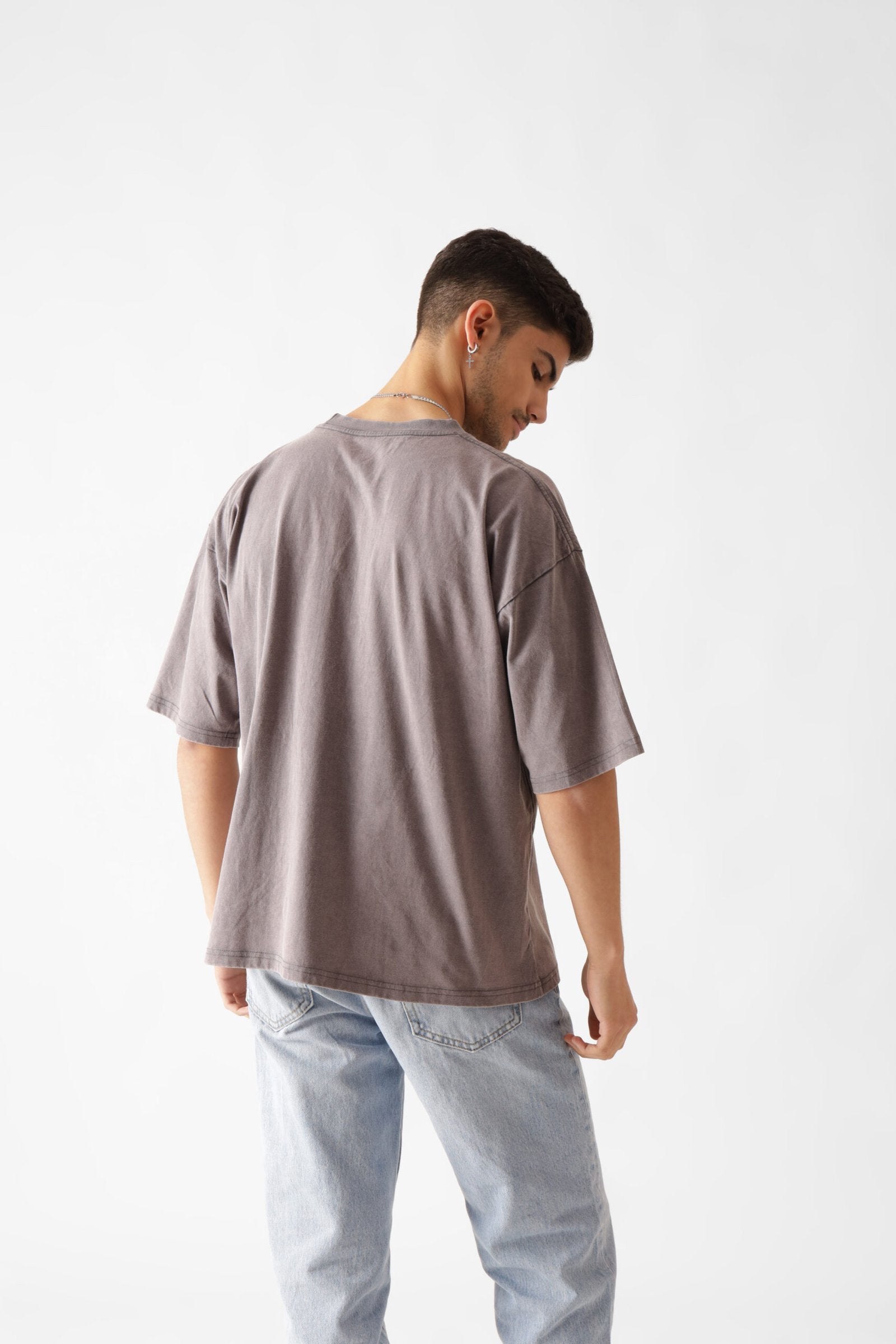 Printed Oversized Tshirt in Grey (Acid Washed)