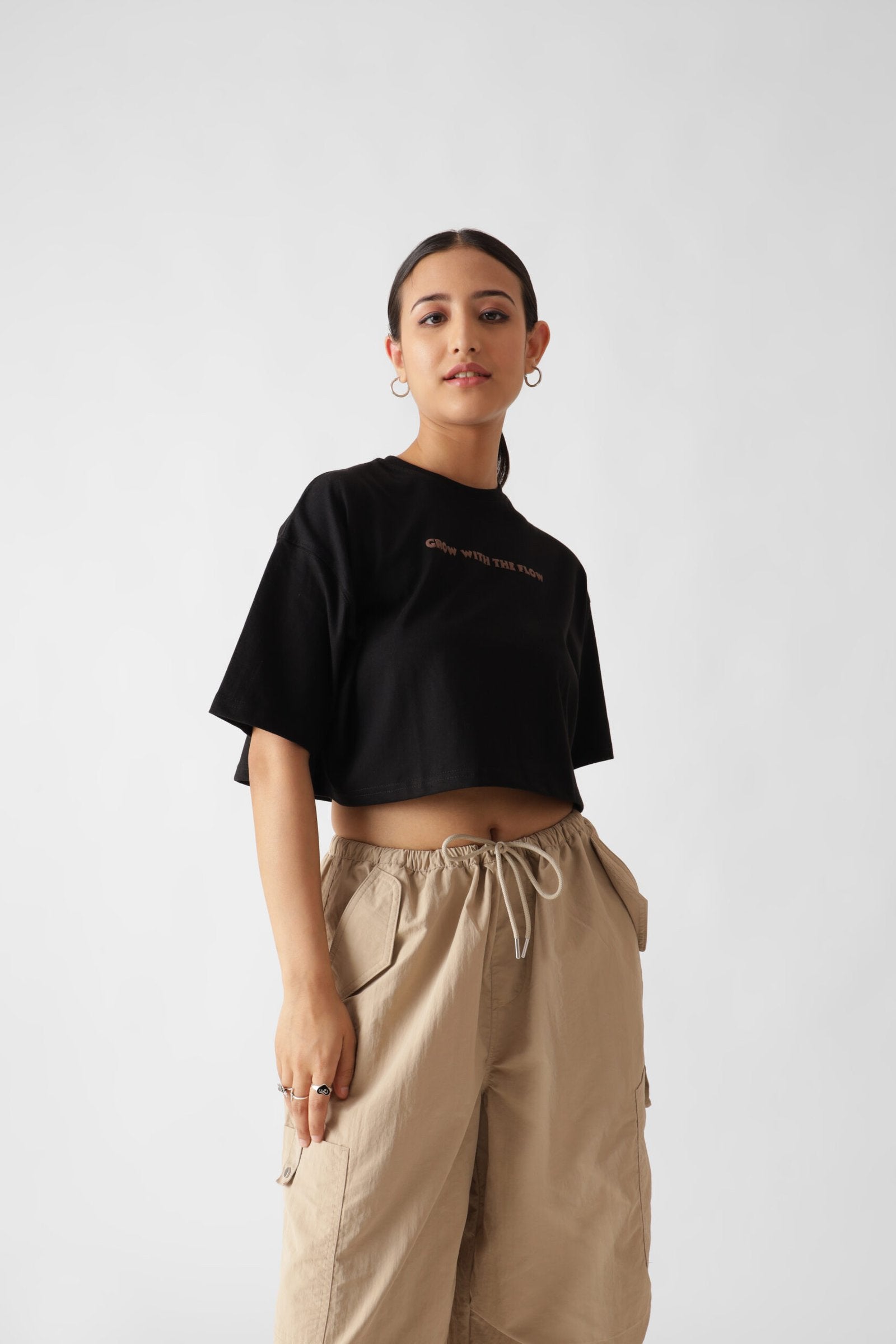 Puff Printed Black Oversize Crop Top